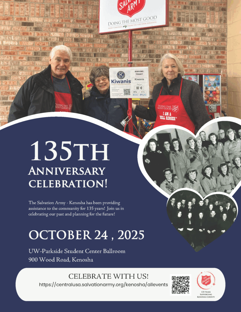 The community is invited to join The Salvation Army – Kenosha County in celebrating its 135 years of supporting those in need.